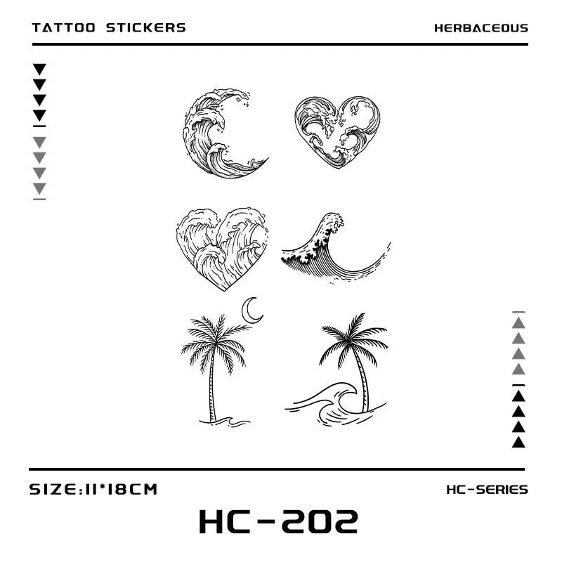 2pcs Island Coconut Silhouette Temporary Body Tattoo Stickers