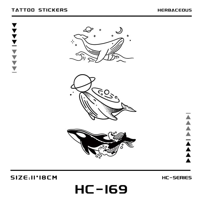 2pcs Whale in Starry Sea Temporary Body Tattoo Stickers