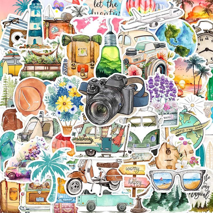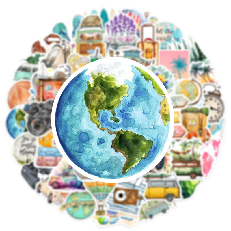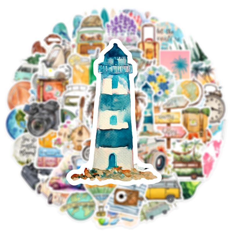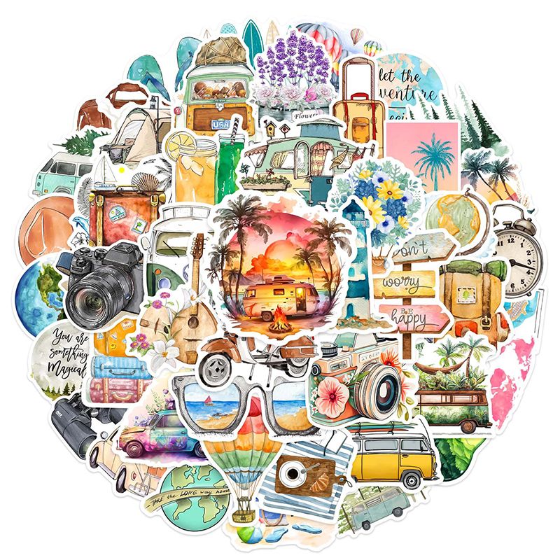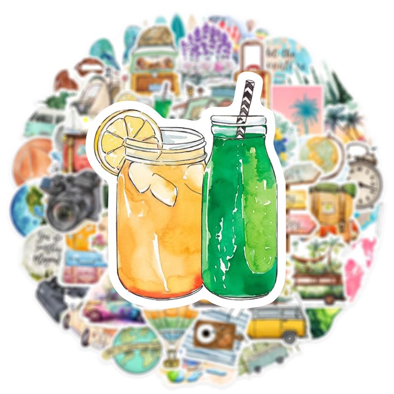 50pcs not repeated colorful watercolor painting waterproof sticker
