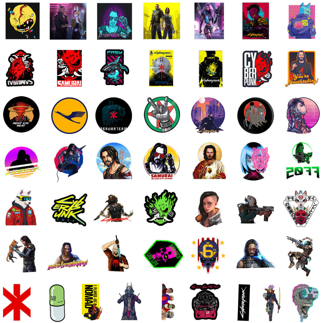 50pcs not repeated Cyberpunk 2077 coloful waterproof sticker