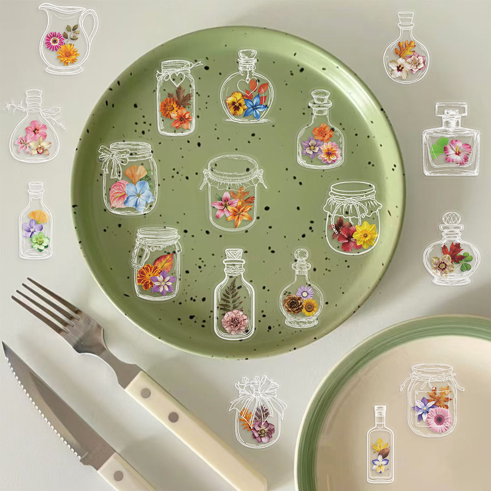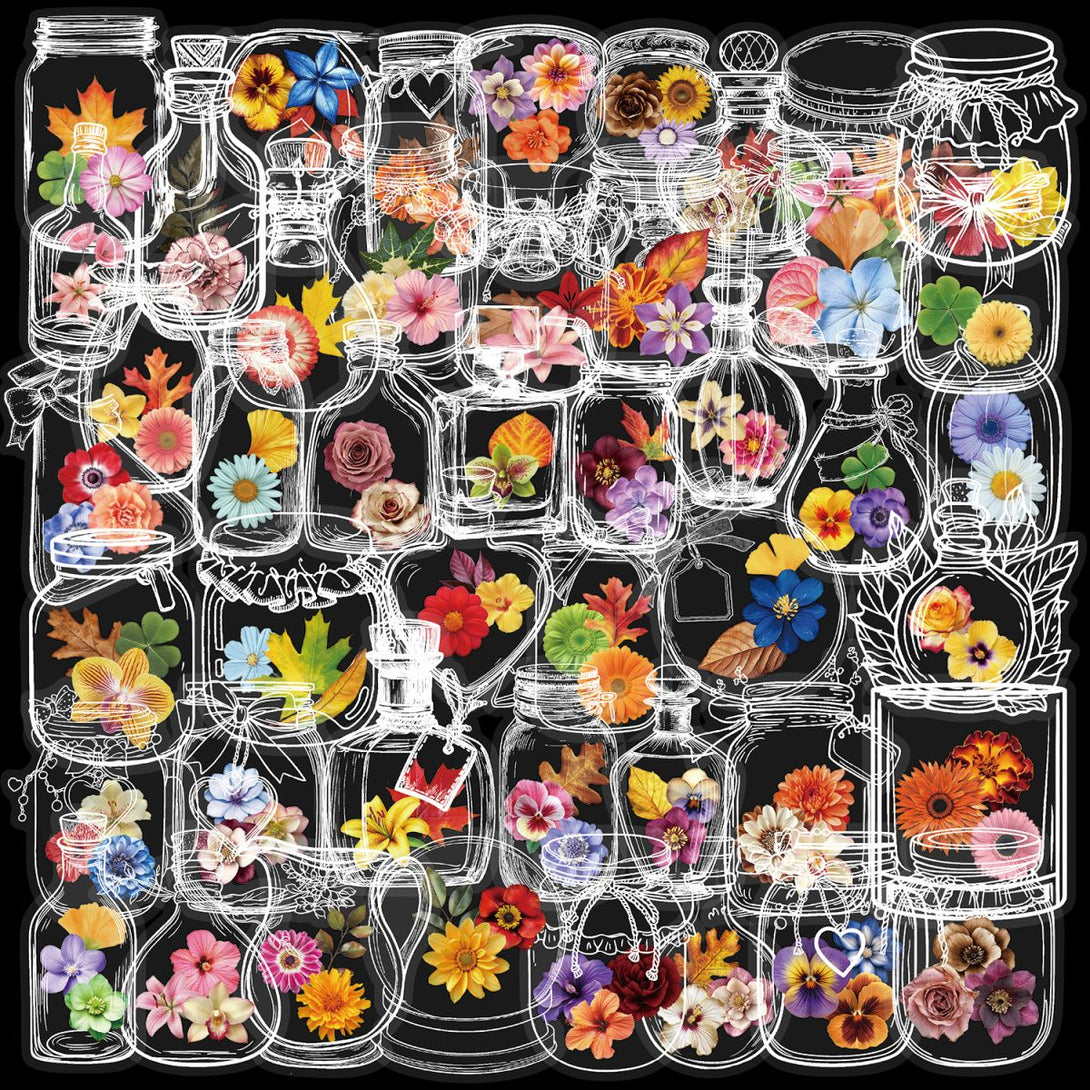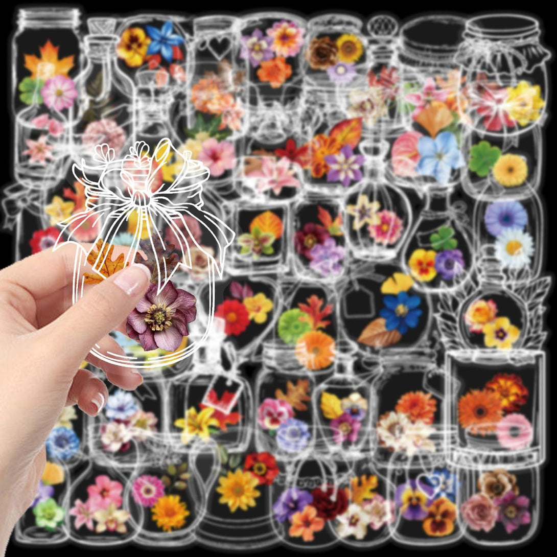 50pcs not repeated flowers transparent PET waterproof sticker