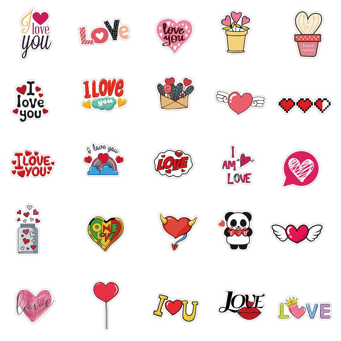 50pcs not repeated romantic love colorful cartoon waterproof sticker