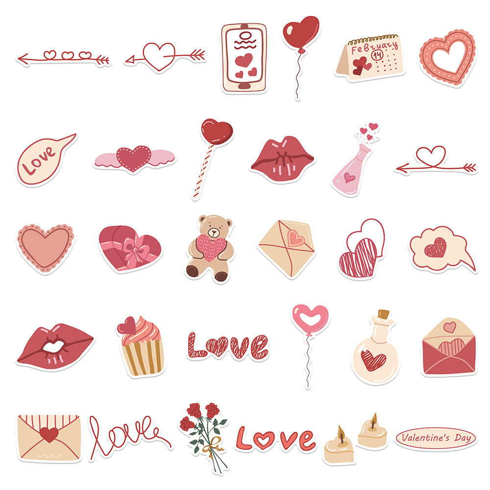 58pcs not repeated romantic love pink sweet girl waterproof sticker