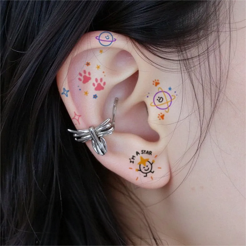 5pcs Cute Colorful Forehead & Ear Temporary Body Tattoo Stickers