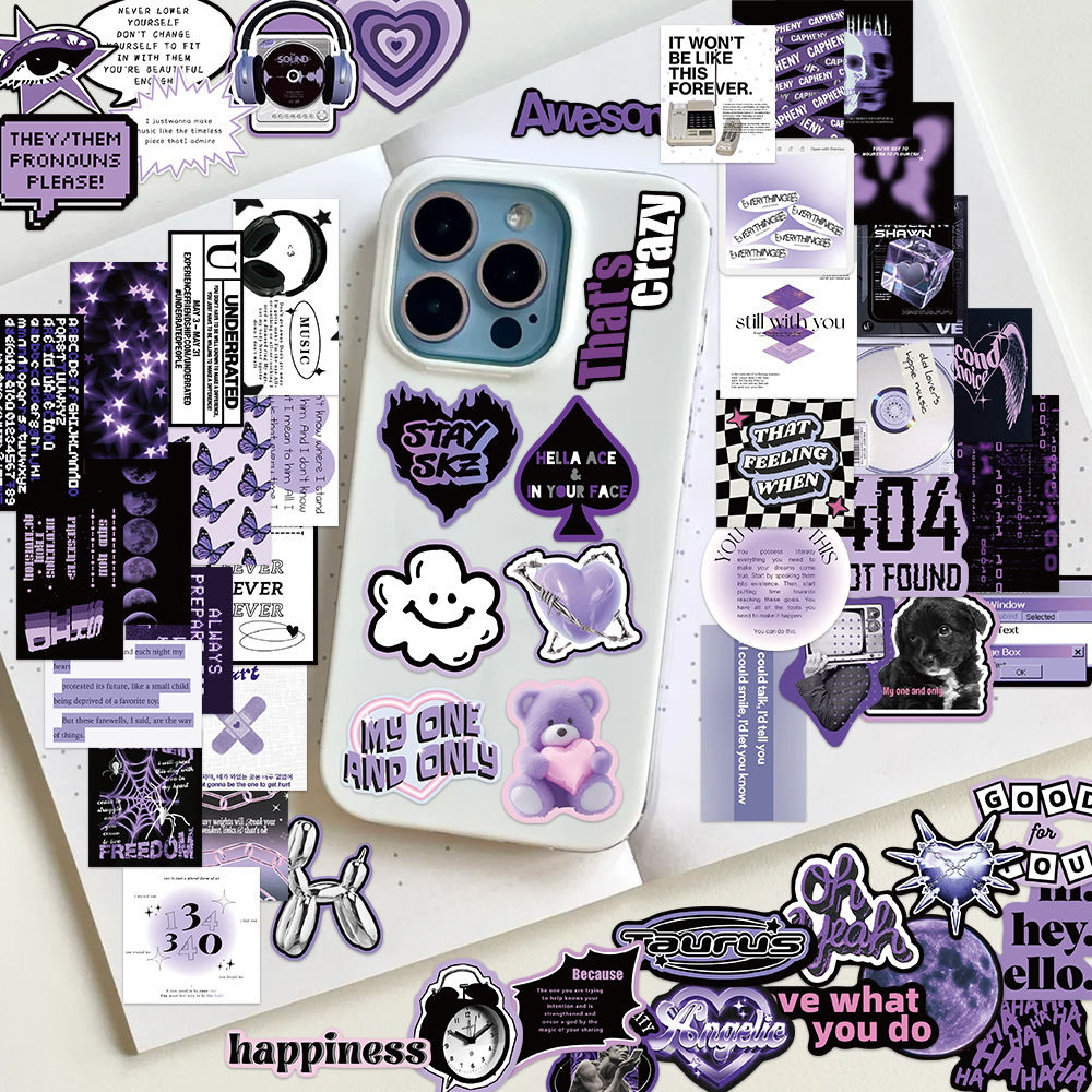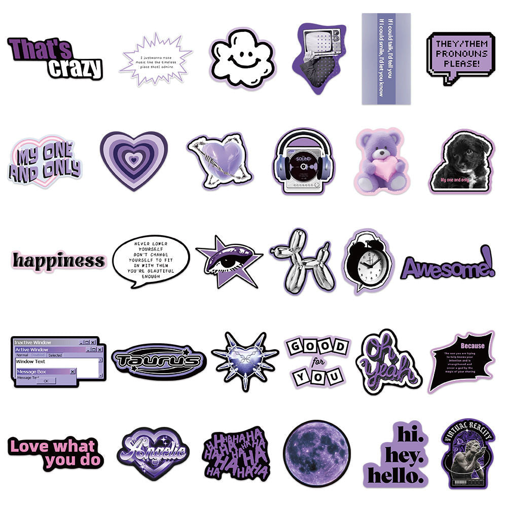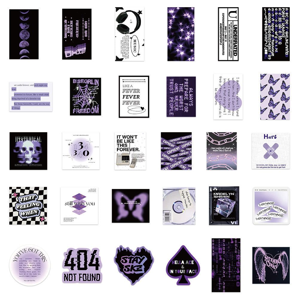 60pcs not repeated black purple cool girl waterproof sticker