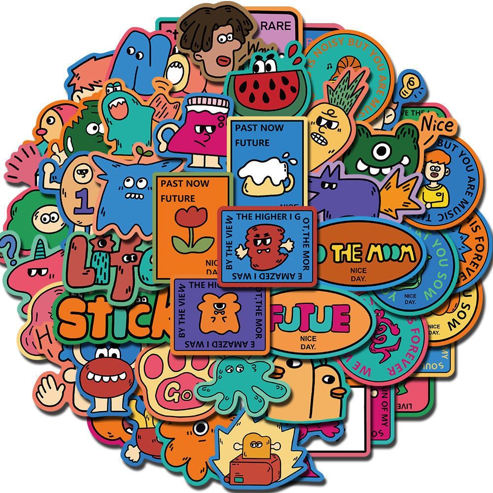 50pcs Not Repeated Wacky Novelties Cartoon Colorful Waterproof Stickers