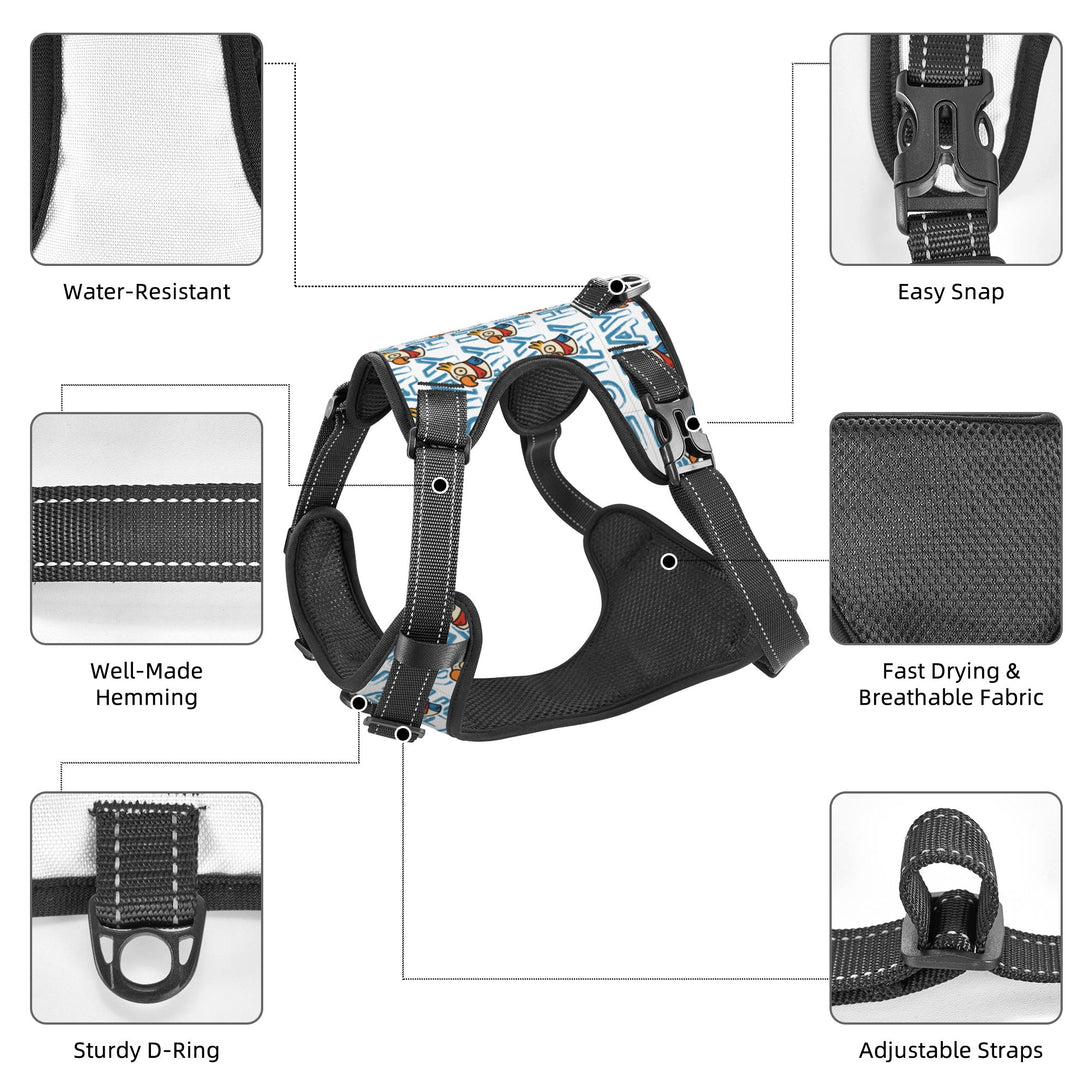 [Product Features] This pet vest is crafted from premium abrasion-resistant oxford fabric. The 3D mesh lining keeps your dog cool and breathable during walks or play. Features 2 quick-release buckles on both sides for easy wearing, and 4 adjustable buckles to customize the perfect fit. Reflective trim enhances visibility in low-light conditions for added safety.